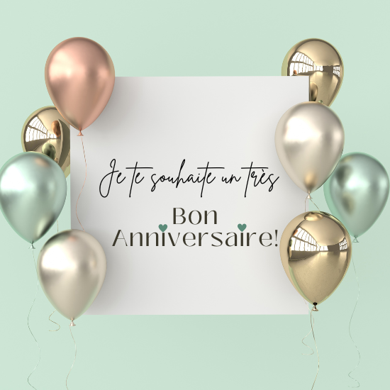 Carte d’Anniversaire Festive avec Ballons et Confettis – Vœux de Joie et de Succès